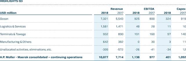 “Our business performance in Ocean is still challenged by increased bunker prices not being fully compensated through higher freight rates. However, we continue to see improved results in the third quarter after a very weak start to 2018.”