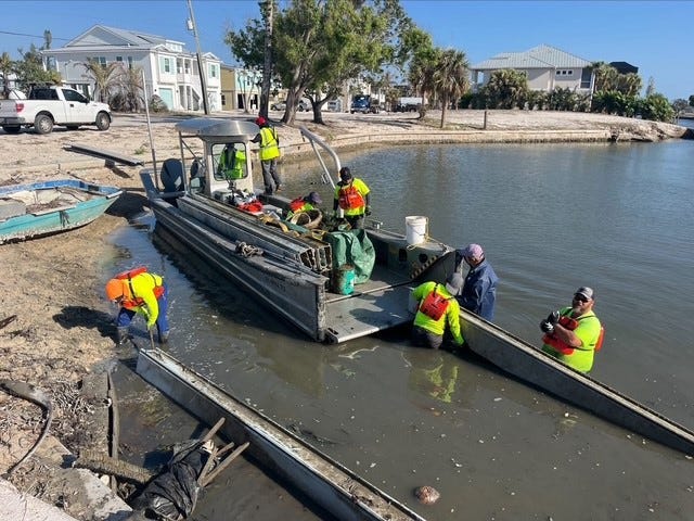 - The contractor (Florida Marine Contracting and Recovery) and Fort Myers Beach staff are working off two skiffs with a crew of 10-12 people daily.