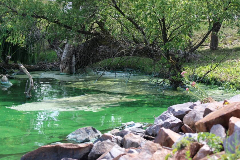 Algae turns Lake Mitchell green near the Lake Mitchell Day Camp in this 2019 file photo.