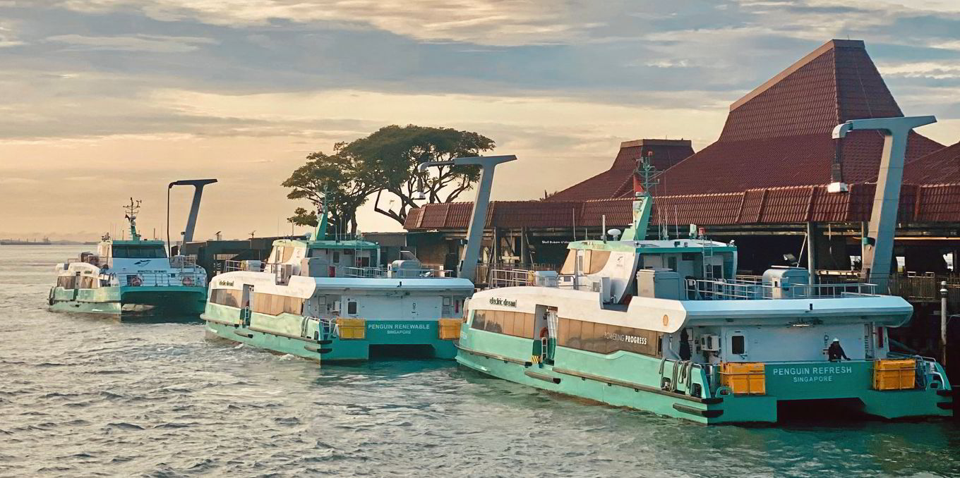 Penguin International’s three battery-powered ferries that operate between Singapore and the Shell refinery on Pulau Bukom.